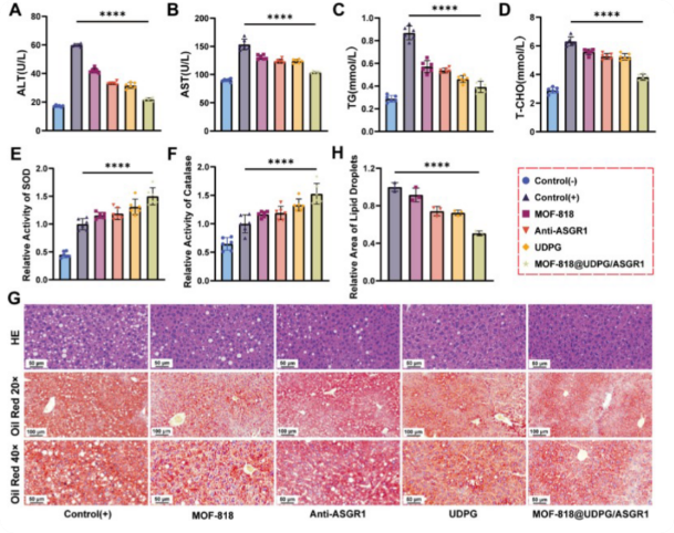 图7 MOF-818 @ UDPG / ASGR1改善饮食诱导的肝脏脂肪变性的体内治疗效果